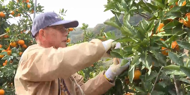 瀬戸内海に面した呉市倉橋島の畑では収穫が始まり、実の色つやを確認しながらハサミを入れていました。