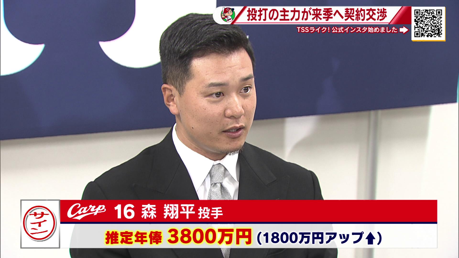 カープ契約更改 森浦は4700万円アップ1億1千万円 初の大台に 菊池は1億7千万円+出来高でサイン