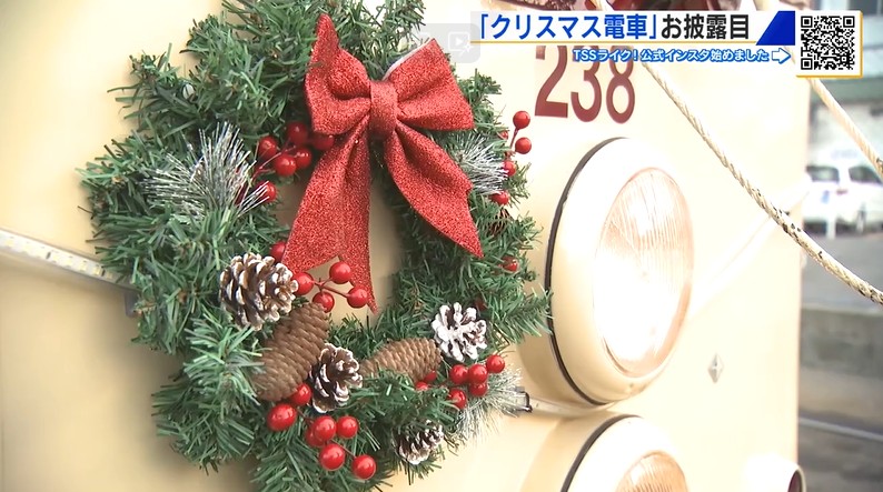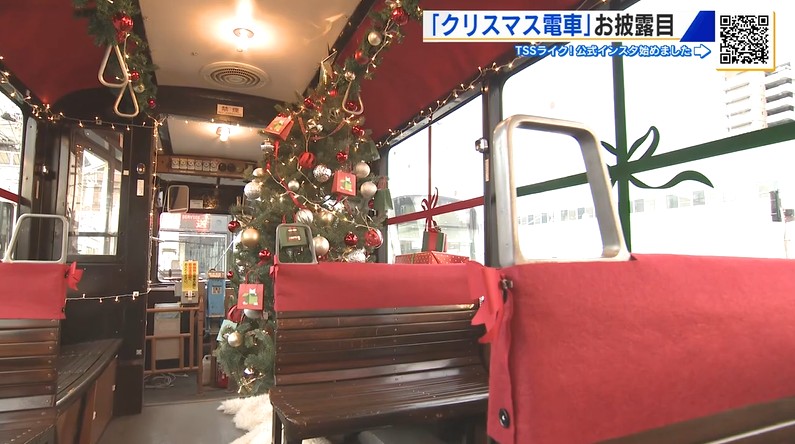 この電車はあすから走行するのを前に公開され、クリスマスイブの今月24日までの間貸切専用で運行。24日はサンタクロースが乗車し、子供たちにプレゼントを配るイベントが予定されています。
