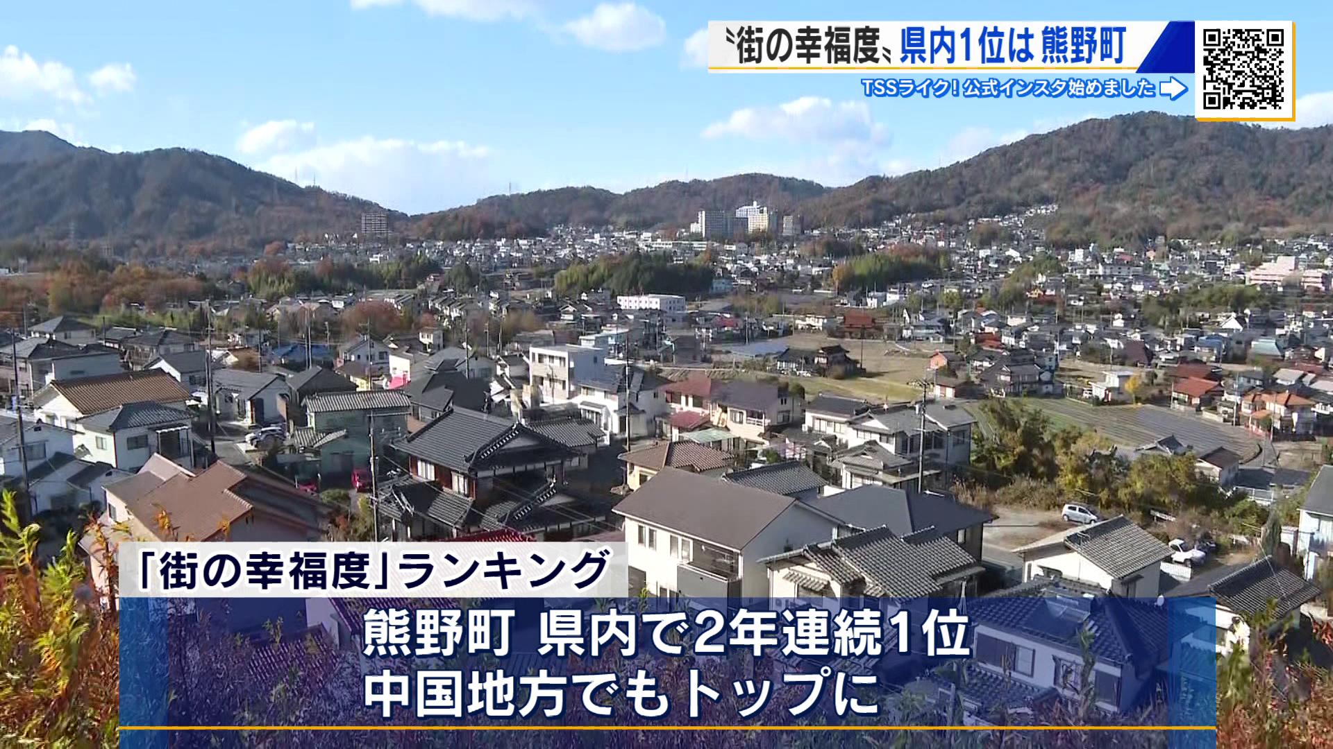 広島県内の「街の幸福度」などを調査したランキングが発表され、2年連続1位に輝いた熊野町では喜びの声がきかれました。