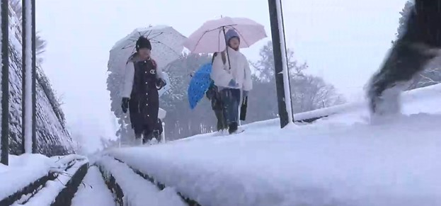 雪が降りしきるなか、元気よく学校に向かう子どもたちは…。