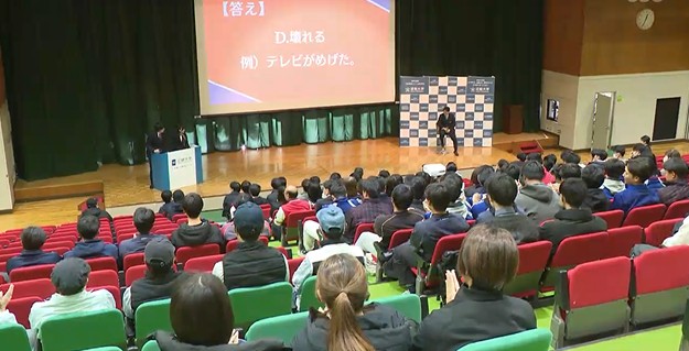 近畿大学からドラフト指名でのカープ入団は勝田選手が初めてということもあり、広島キャンパスをあげて“全力応援!”学生や教職員などおよそ120人が集まり、勝田選手は広島にまつわるクイズに挑戦するなど、盛り上がりを見せていました。