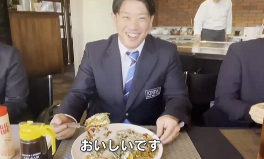 カープ・ドラ3勝田成選手(近大)が初広島、初お好み焼き 学生と交流「少しでも戦力になって優勝を」