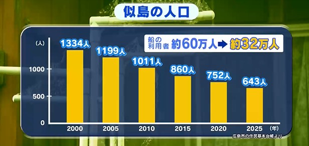 それに伴い、年間60万人ほどいた利用者はおよそ32万人まで減り、島の過疎化は航路の維持に大きな影響を与えています。