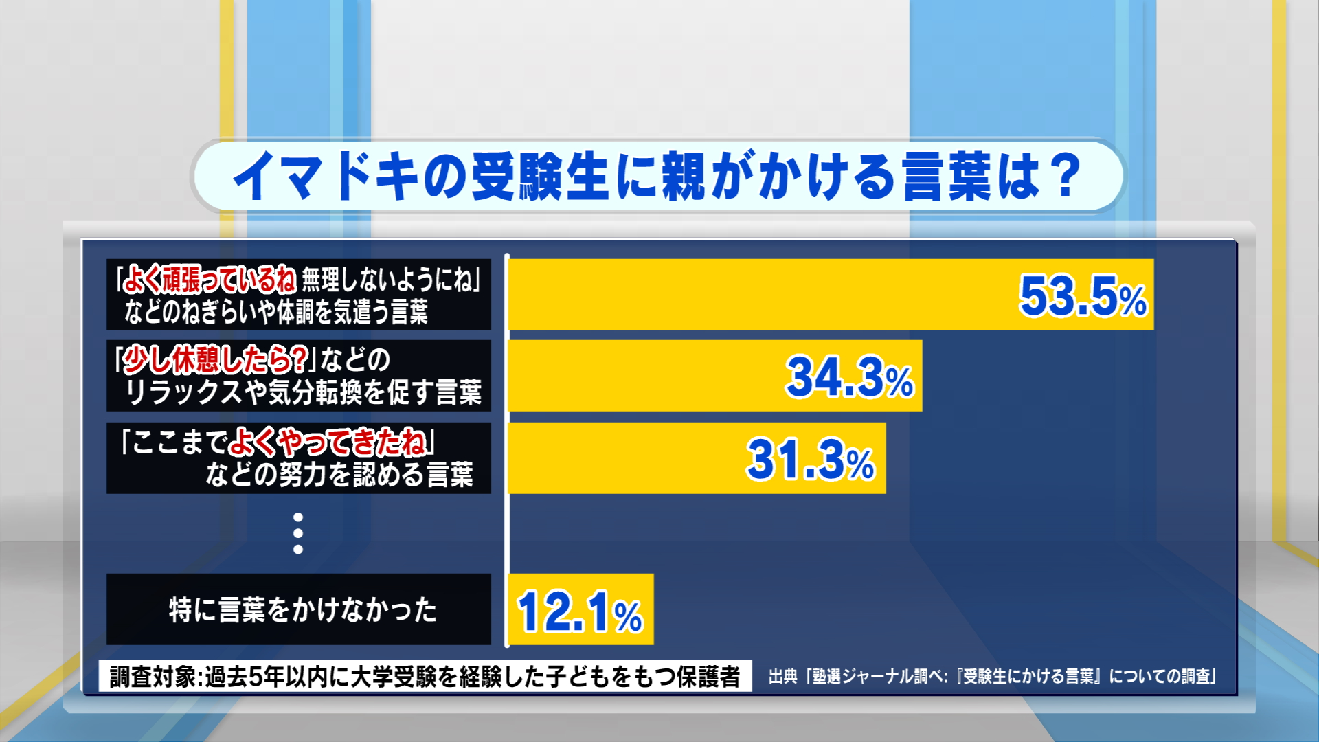 また、「特に声をかけなかった」と回答した家庭が12.1%ありますが、こちらも放っておくという意味ではなく、必要以上にプレッシャーをかけない配慮があるんだそうです。