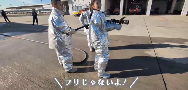 前回、空港消防の出動訓練に参加した2人は、消防隊員が着る「防火衣」の早着替えに挑戦!見事勝利した恋乃葉隊員が放水に初挑戦です!