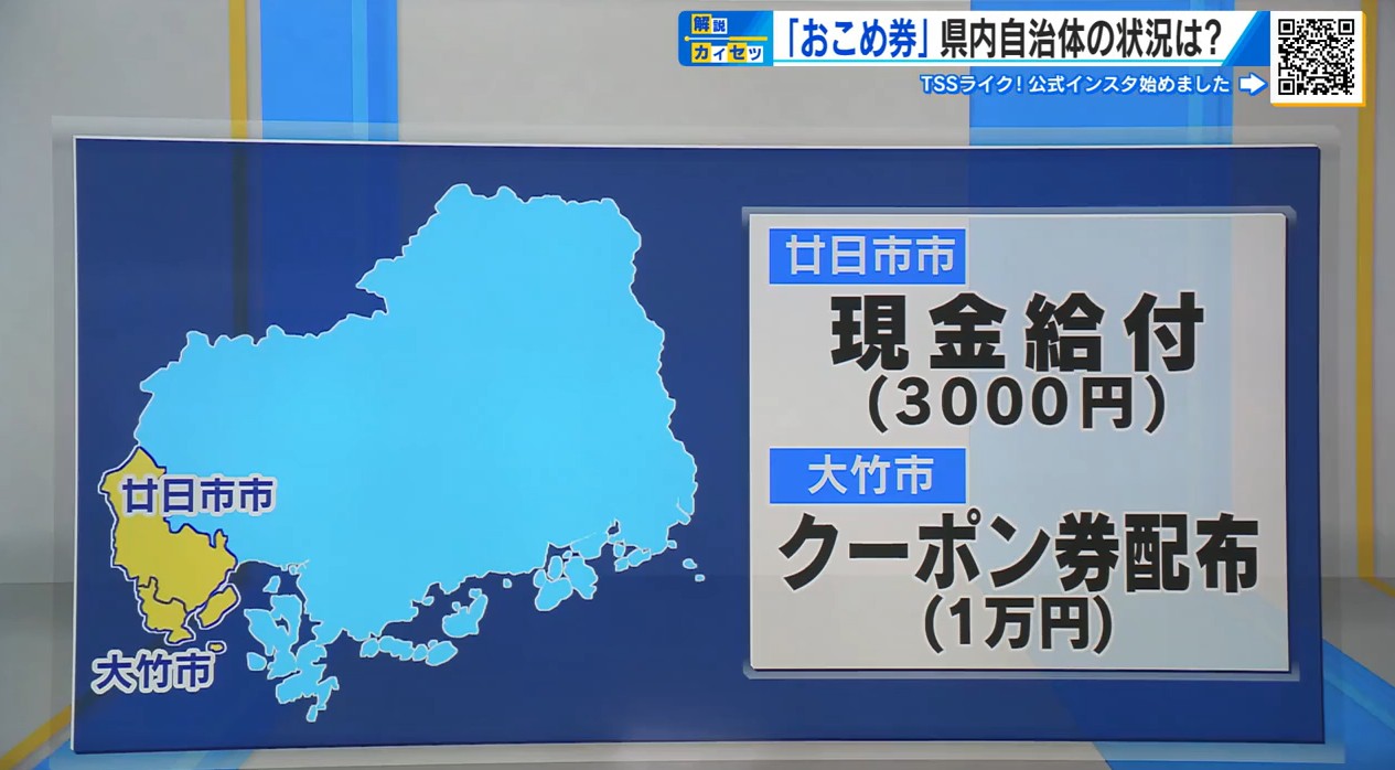 大竹市 「おこめ券」ではなく『クーポン券』配布を決定 市民1人あたり1万円分 市内店舗で使用可 広島