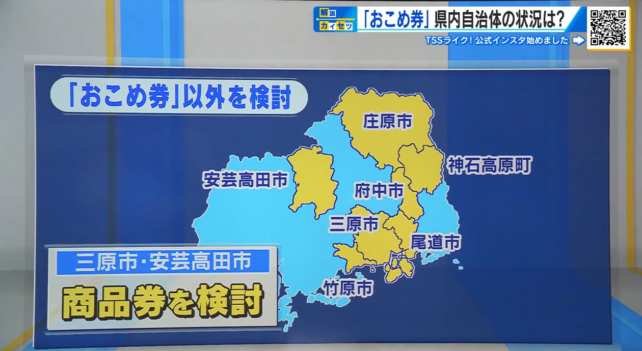 そして、「おこめ券」以外の形で検討しているのが、庄原市・府中市・尾道市・三原市・竹原市・安芸高田市・神石高原町。