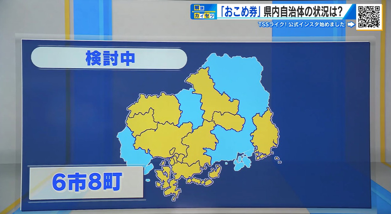 一方、広島市・福山市など6市8町の自治体については「おこめ券」にするのかそれ以外の形にするのか検討中で、現時点で「おこめ券」を配布する自治体はありませんでした。