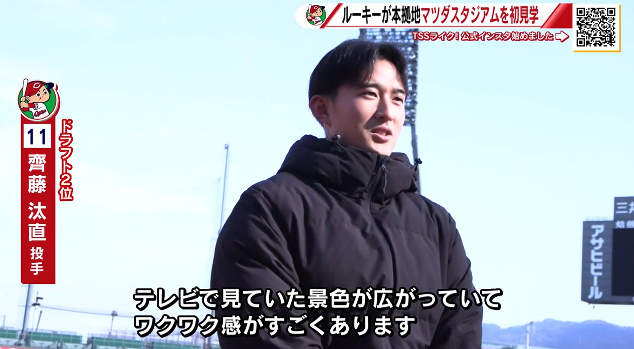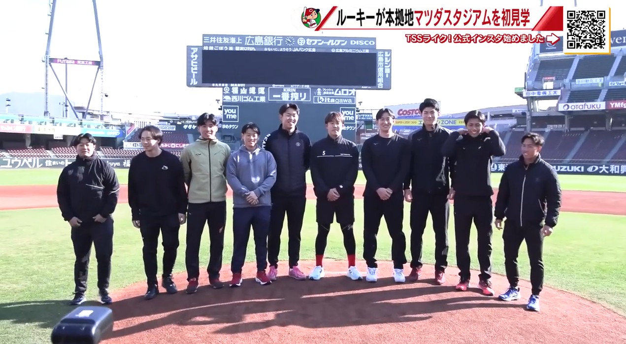 カープ新入団選手 マツダスタジアム見学 ドラ1平川選手「赤くていい球場!魅了するプレーをしたい」