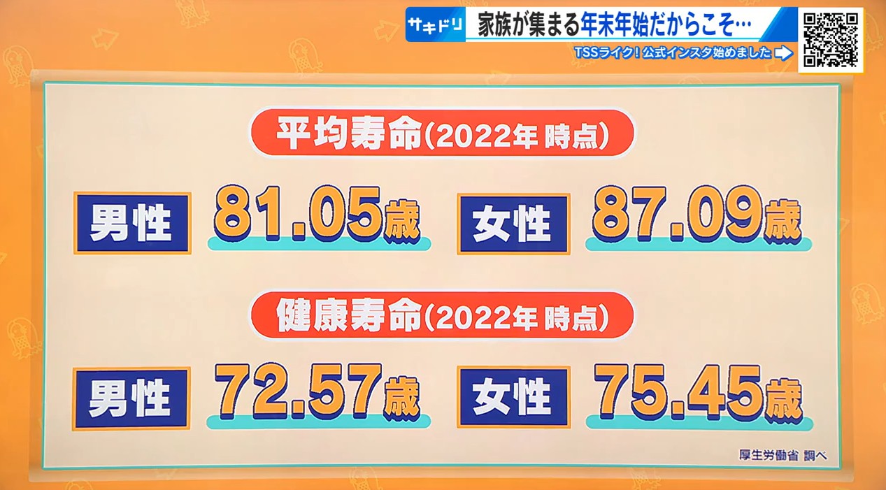 厚生労働省によりますと、日本の平均寿命は2022年時点で男性は81.05歳、女性は87.09歳。