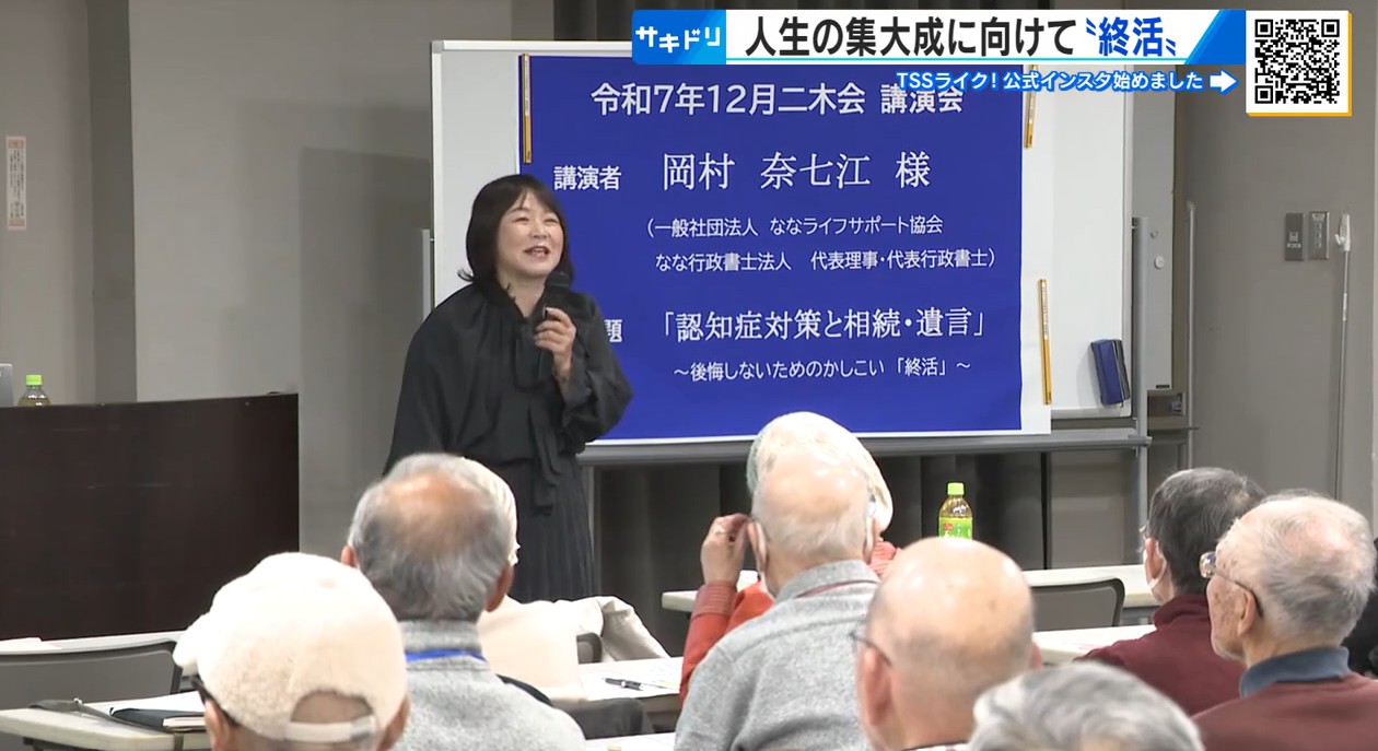 講演するのは、相続の手続きや遺言の作成などを主にやっている行政書士、岡村奈七江さんです。