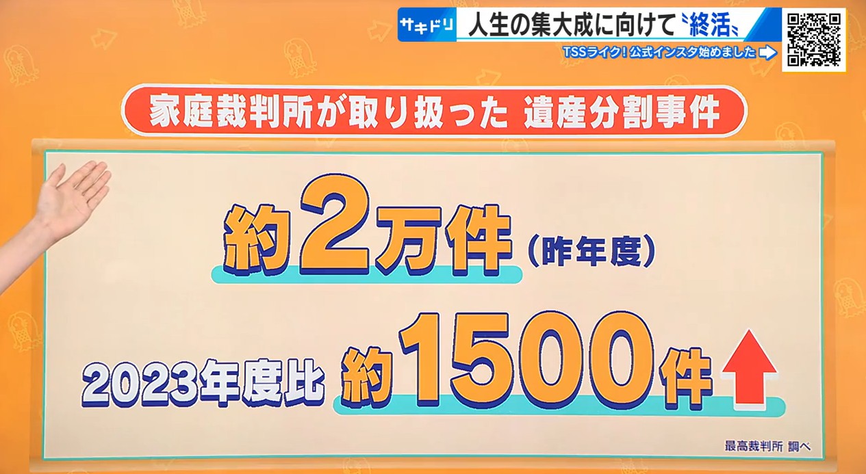 広島家庭裁判所によりますと、全国の家庭裁判所に昨年度、申し立てられた遺産の分割について、相続人の間で話合いがつかない遺産分割事件はおよそ2万件と、2023年度と比べ、およそ1500件増えています。