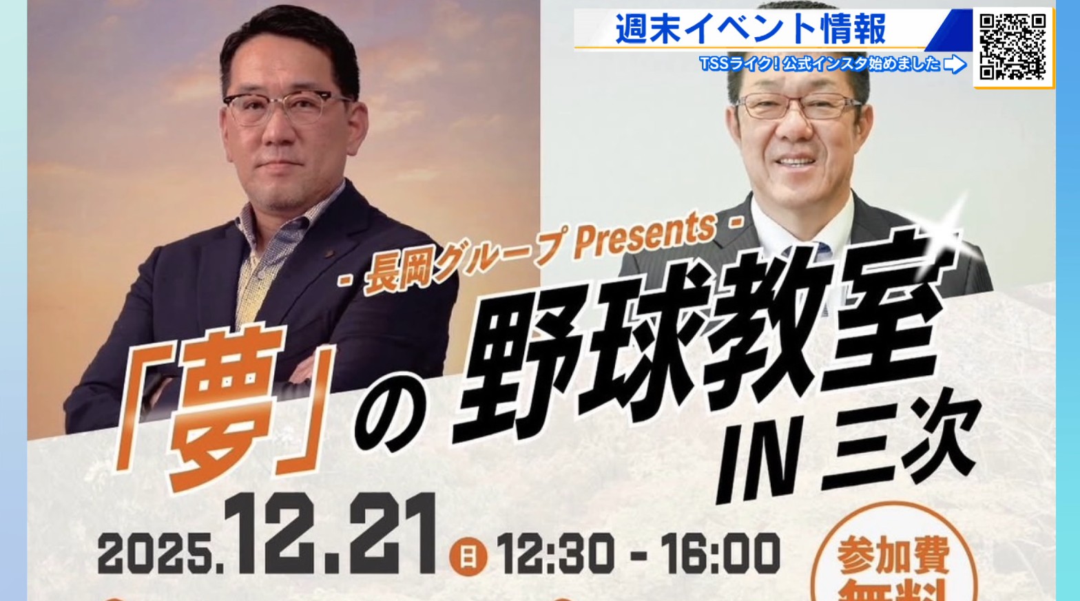 三次市では21日、カープの野村謙二郎元監督、佐々岡真司元監督、さらに中村奨成選手など現役の野球選手らが参加する「夢」の野球教室が開催されます。