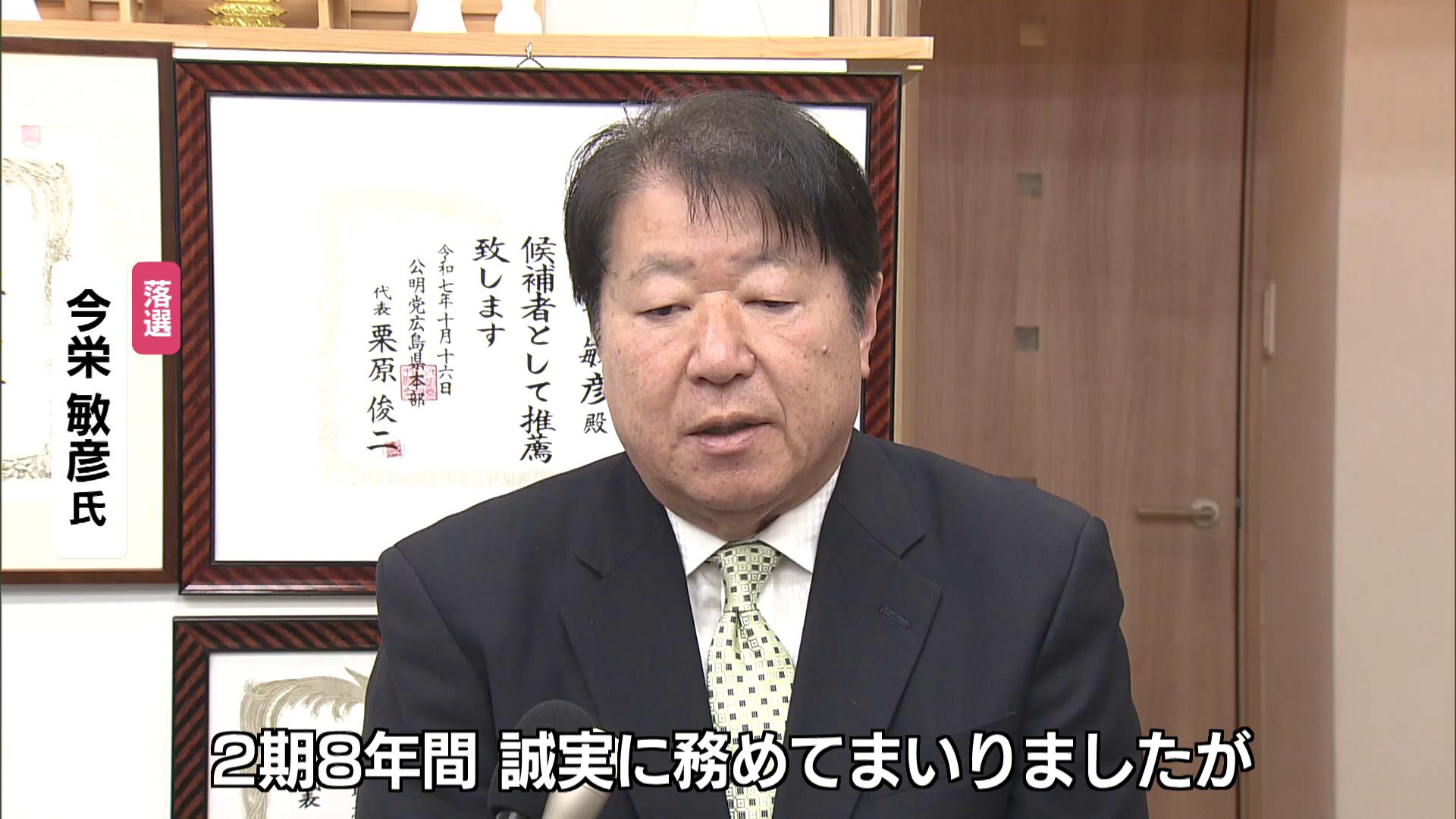 「2期8年間、誠実に務めてまいりましたが、結果として市民の皆様に私の取り組んできたこと、これから進めようとすることにご理解をいただくことができなかったことに非常に残念な思いがしております」