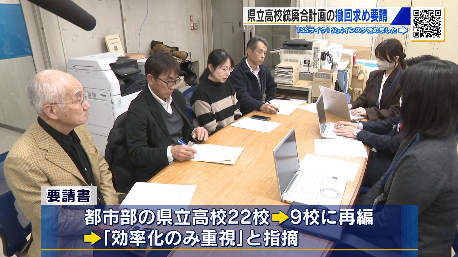 要請書で、組合側は、県教委が都市部の県立高校22校を9校に再編する方針について「効率化のみを重視した一方的な統廃合計画」と指摘。来月にも予定される「実施計画案」の発表を撤回し幅広く県民の声を聞くよう求めています。
