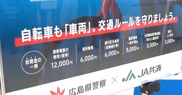 16歳以上の自転車運転手に「青切符」 ながら運転は反則金12000円 JAがポスターで周知