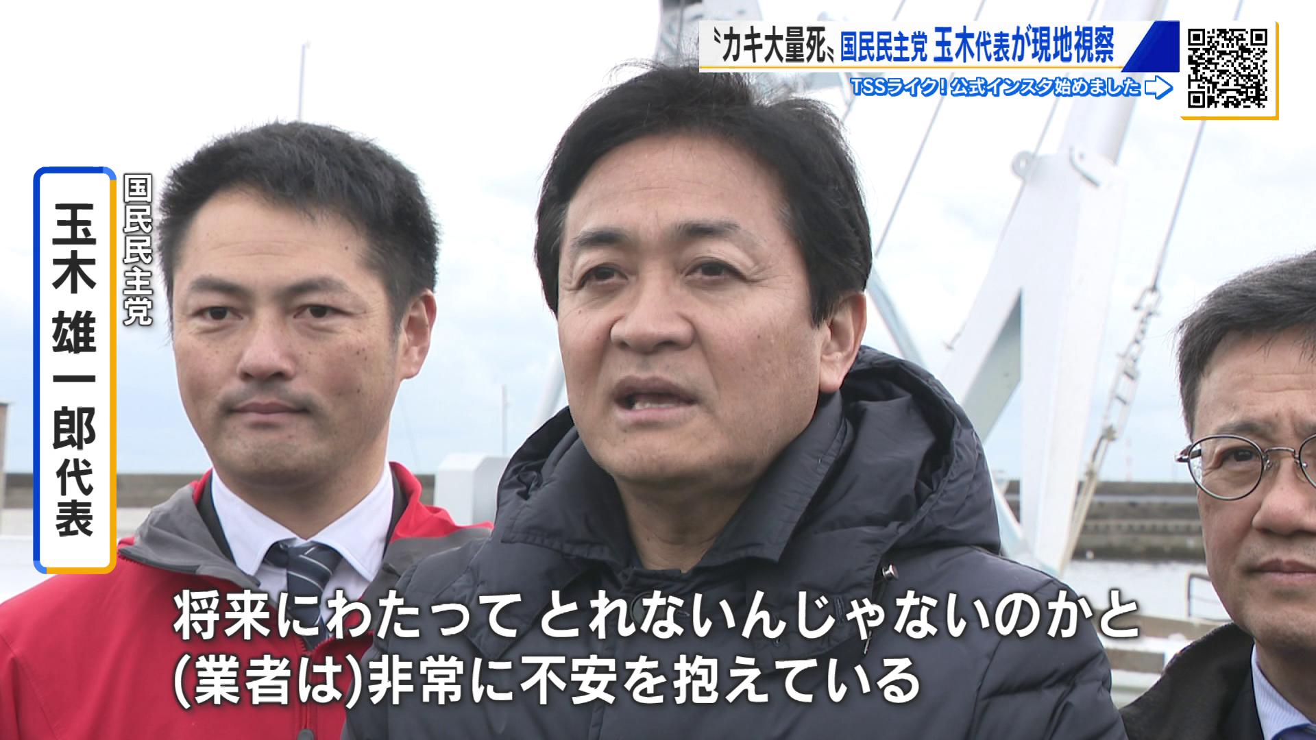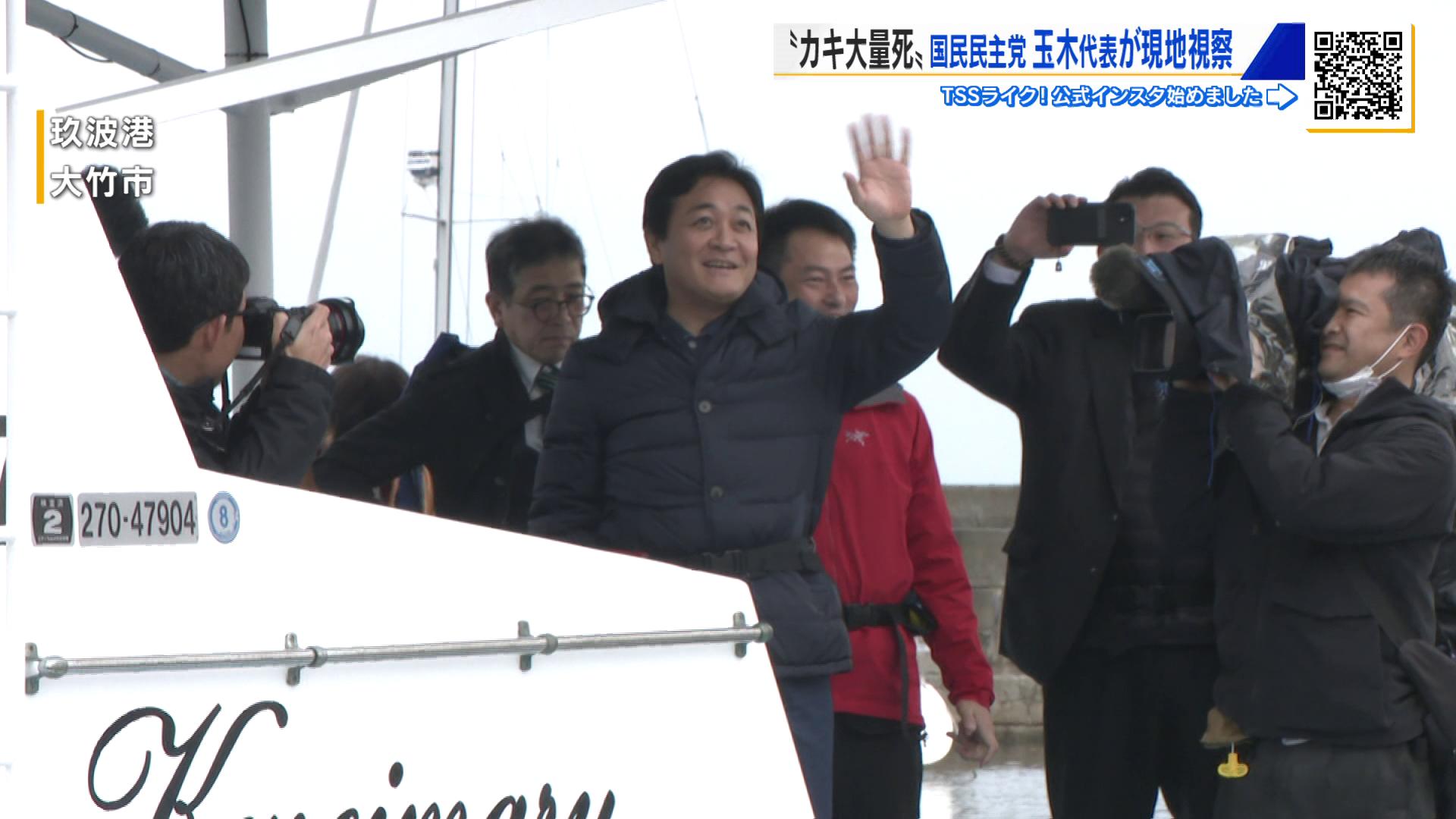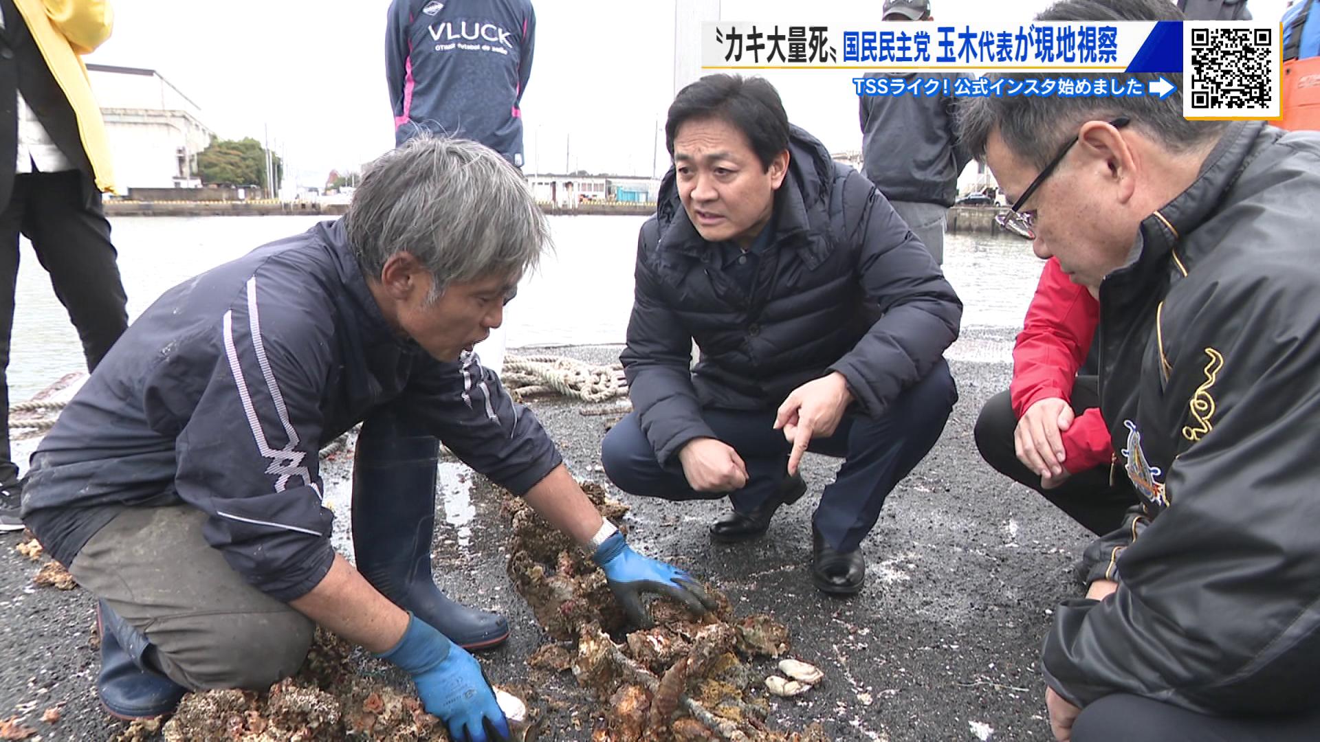 深刻な問題となっている養殖カキの大量死を受けて、国民民主党の玉木代表が広島入りし現地を視察しました。
