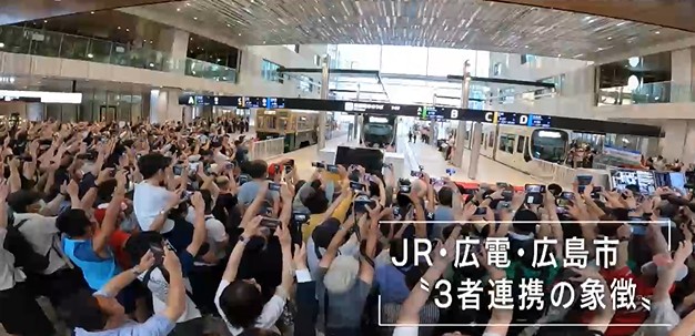 JR・広島電鉄・広島市が3者で連携して作り上げた象徴「中央アトリウム空間」には8月、日本で初めてJRの駅ビル2階に路面電車が乗り入れました。