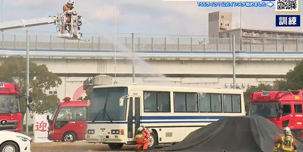 事故に伴い発生した火災には、はしご車や特別な車両も出動し放水活動を行いました。