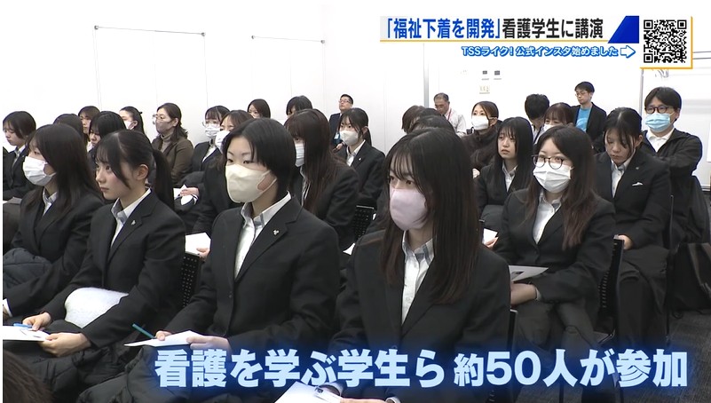 排泄障がいに対応した新たな福祉下着を開発した女性が、きょう初めて講演会を行い、看護を学ぶ学生に当事者の思いを語りました。