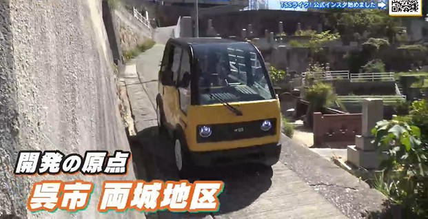 そして…2024年9月、開発の原点である呉市両城地区で軽自動車も通れないような狭い坂道を走破しました。