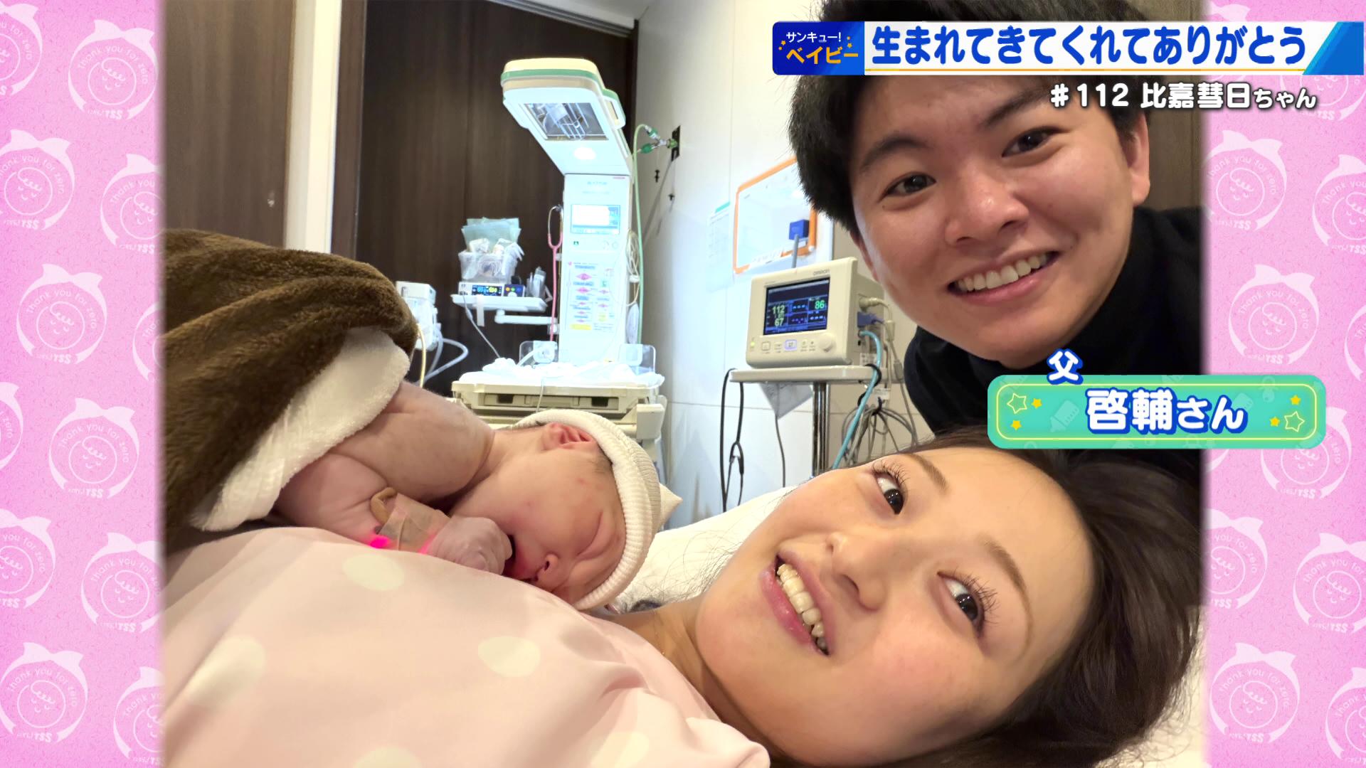 「里帰り出産で広島にいるので、夫(啓輔さん)が和歌山にいて。週末ちょうど帰ってくるっていう時期に生まれてきてくれたので、パパに合わせて出てきてくれました。(立ち会った夫は)一生懸命痛いところを押してくれたりもしていたので、一緒に頑張ったという感じです。(出産が)終わった後にありがとうってずっと言ってくれた」