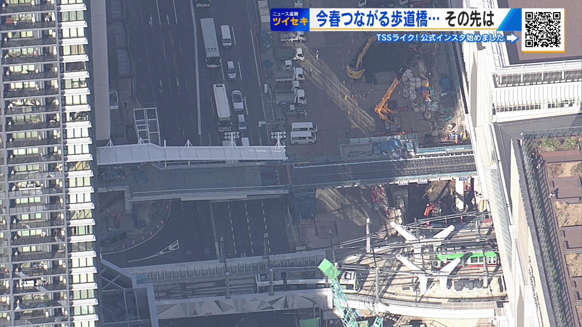 奥の広島駅から手前のエールエールA館につながるペデストリアンデッキができて、歩いて駅前から行けるようになります。広島駅前は生まれ変わり続けています。