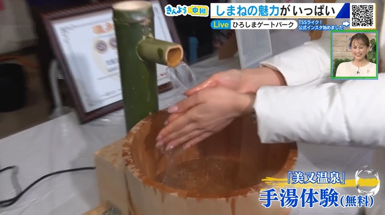島根の美肌の温泉で有名な「美又温泉」の手湯体験ができるブースです。