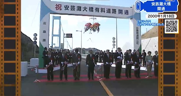 開通した安芸灘大橋は、長さ1175メートルの吊り橋で、総工費487億円、12年の歳月をかけて完成しました。