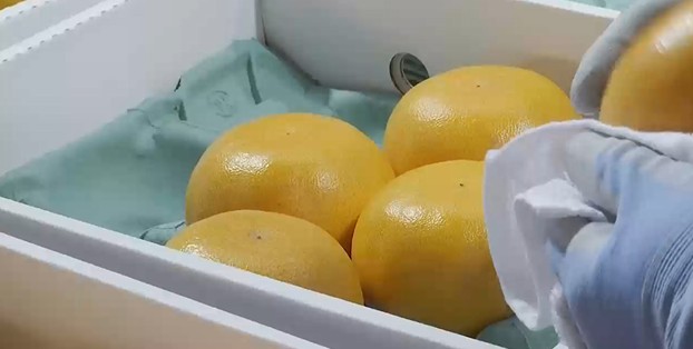 この日は、JAの選果場にハウス栽培の「せとか」およそ500キロが持ち込まれ、作業員がひとつひとつ丁寧に磨いて袋詰めしていました。