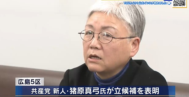 広島5区では共産党・新人の猪原真弓氏が19日立候補を表明し、