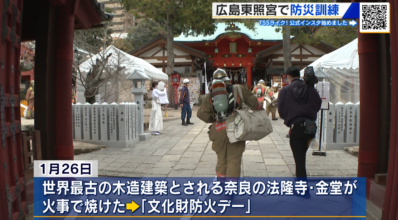 今月26日の「文化財防火デー」を前に、広島市内の神社で消防署と地域住民が連携した消火訓練が行われました。