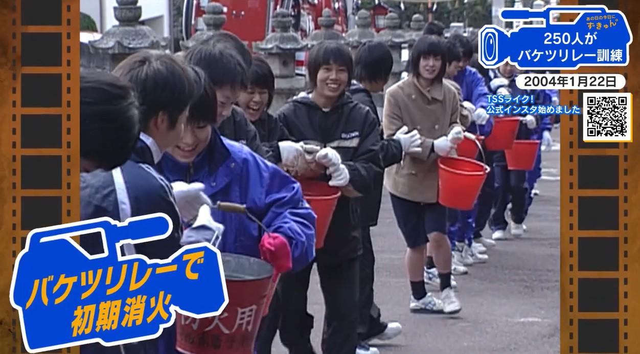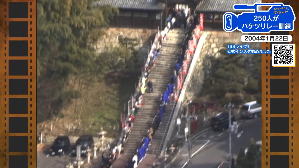 今から22年前の2004年1月22日文化財防火デーを前に広島市内の神社で250人が協力してバケツリレーが行われました。