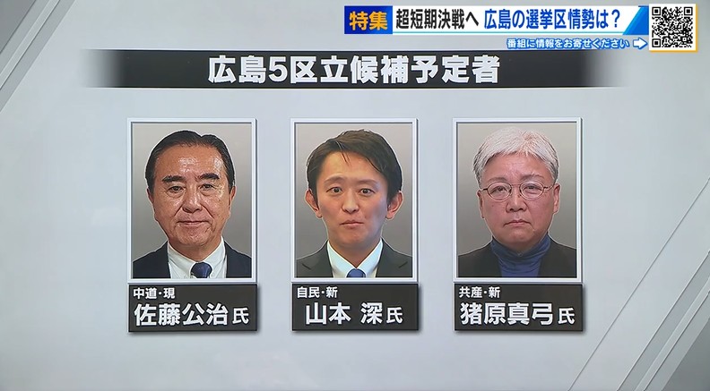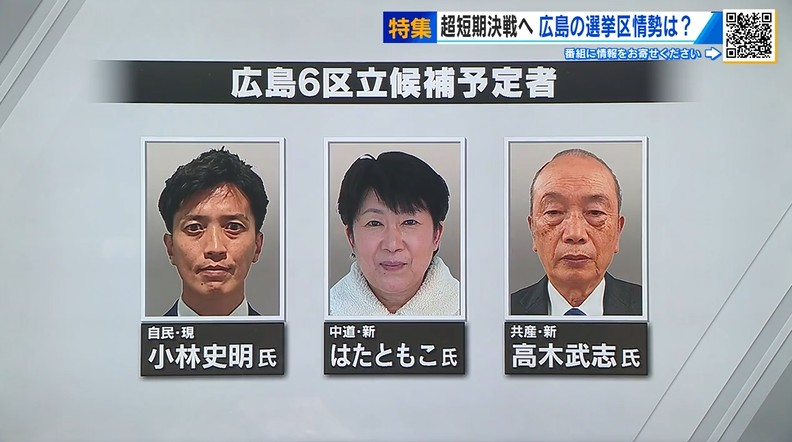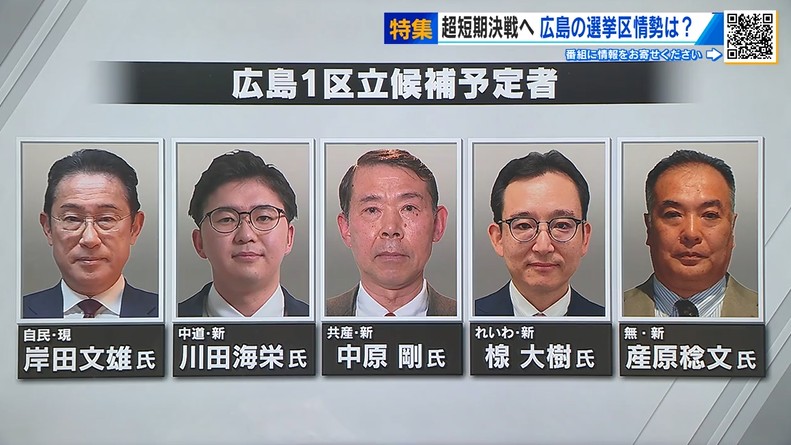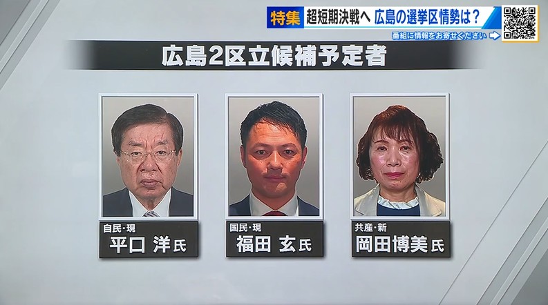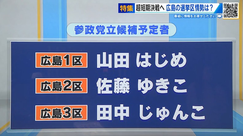 ここまでお伝えした全6選挙区の顔ぶれは21日午後までの情報で、つい先程、参政党も広島1区、2区、3区に候補者を擁立すると発表しました。