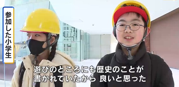 大きくリニューアルされた3階の展示室には、実際の砲弾や模型の積み木など「触れる展示」も多く並び、子どもたちは一足早いお披露目となった新たな施設に興味津々の様子でした。