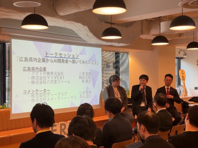 県は来年度も参加者の拡大を目指しており、次年度採択に向けて課題をエントリーしている地元企業の中から、アクト中食、マツダE&T、八天堂ファームの3社が登壇。AI技術を活用して解決したい事業課題をそれぞれ発表しました。