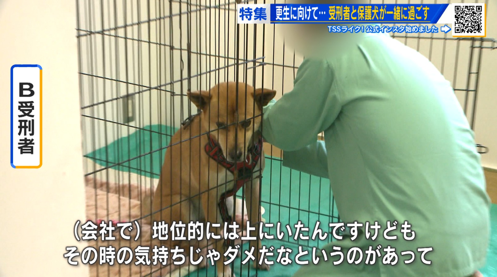 「(刑務所に)入る前はすごい自分のしてしまったことにすごい後悔をしてしまって、なんでこんなことをしてしまったんだと全然前を向くことが出来なかったんですけど、このプログラムに参加させてもらうことができて、早く社会に戻れるような人間になりたいっていうのはすごく強く思って。自分だけが癒されるんじゃなくて、保護犬のためにどうしたらいいかっていうのをしっかりと考えながら、どうやったらもっと人懐っこくなってくれるのか」