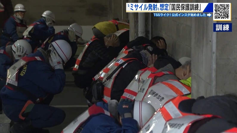 外国からのミサイル攻撃を想定「国民保護訓練」地下室へ駆け込み体を伏せ身を守る 初動がカギ
