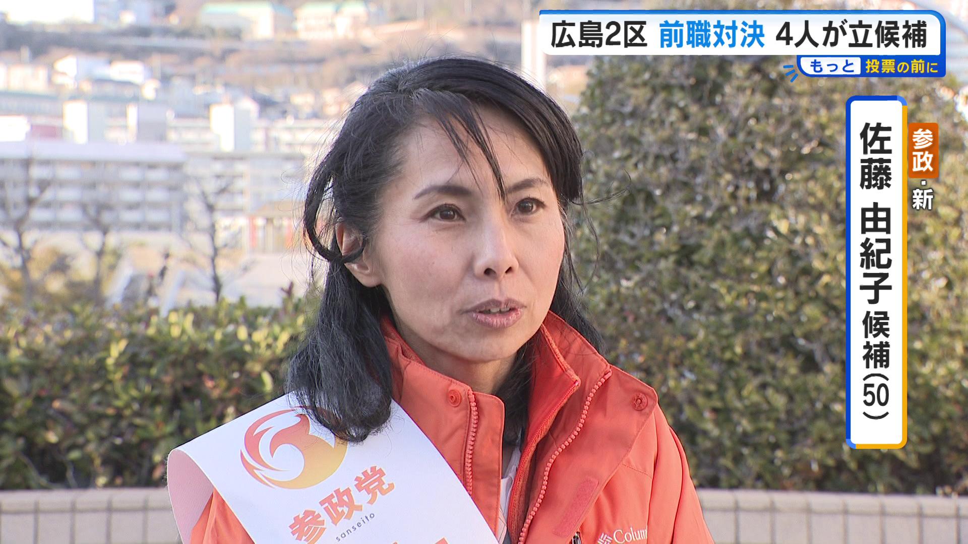 参政党の新人、佐藤由紀子候補(50)は、公示直前に党からの打診を受けて、急遽、選挙に挑戦。