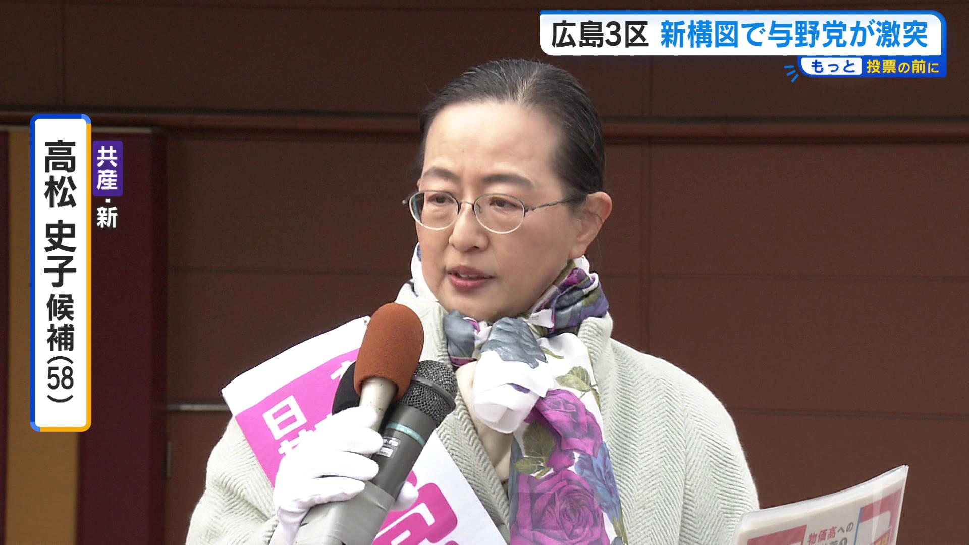 自民・公明の連立政権解消や立憲・公明による新党の結成で構図が大きく変わった広島3区。各党の幹部や閣僚らが応援に駆け付け激戦が繰り広げられています。