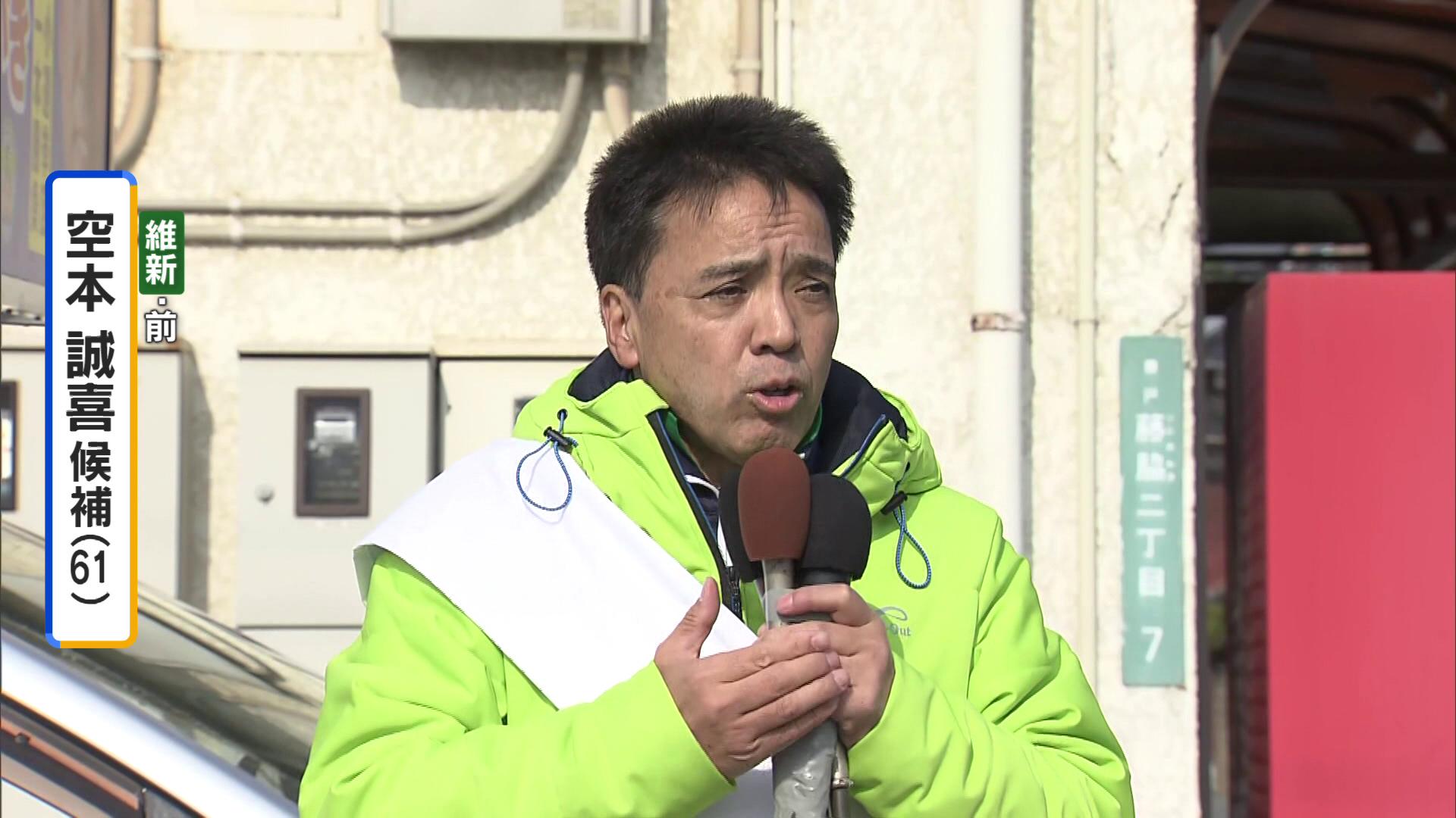 激戦の4区で前回の戦いを制したのが、日本維新の会・前職の空本誠喜候補(61)。生まれ故郷は呉市音戸町で、沿岸地域にも縁が深いことを強調し、支持を広げます。