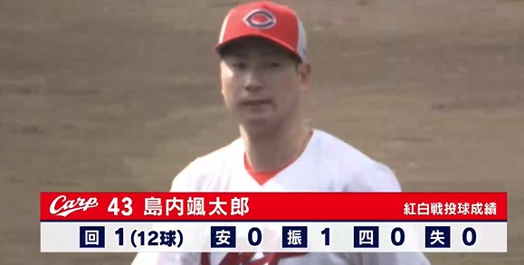 一方、ピッチャーでは島内が紅白戦に初登板。