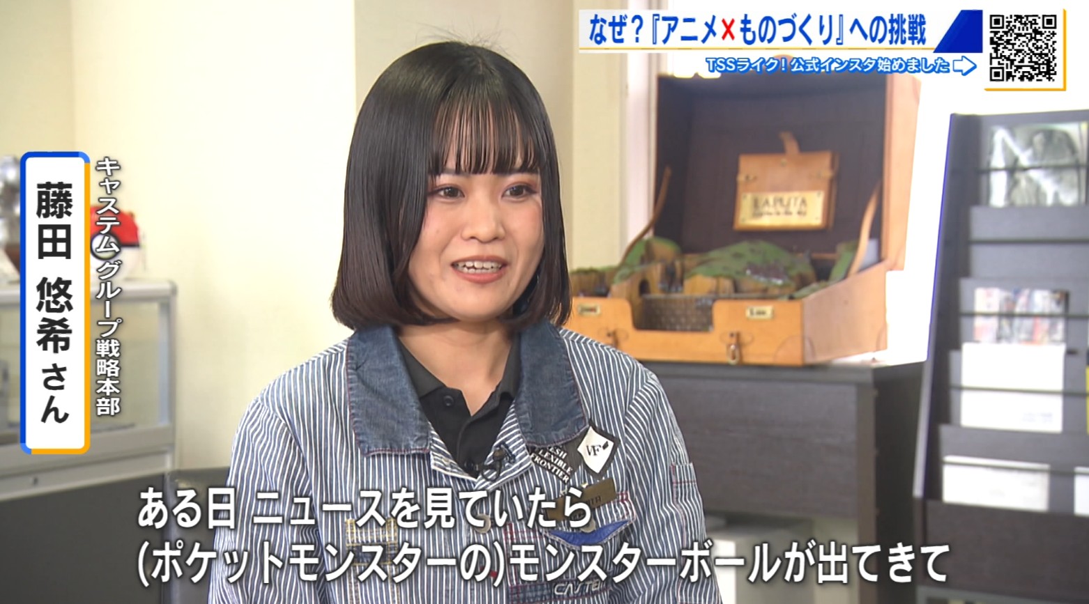 「福山市に住んでいるんですけど、キャステムっていう会社を知らなくて、ある日ニュースを見ていたら(ポケットモンスターの)モンスターボールが出てきて、福山市のキャステムっていう会社がつくったというニュースを見たときに、『えっ、こんなのつくってるの!?』っていうのが一番のきっかけです。部品だけじゃなくてアニメとコラボして、『自分たちの技術を使って一般のお客さんにPRしよう』という事業展開がおもしろくて興味を持ちました」
