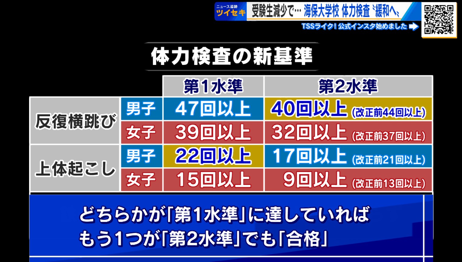 「近年の若い人の体力状況を勘案して改正した。(海上保安官を)希望してもらうことで職員を増やすことに繋げていきたい」