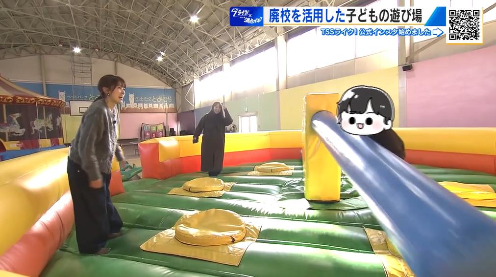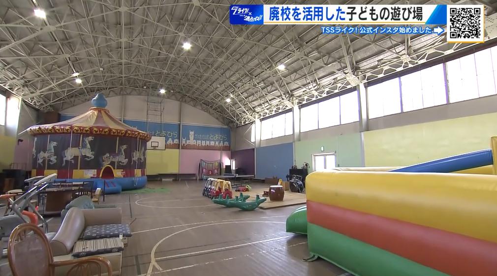 「うわぁ!体育館。体育館だけど遊具もたくさんありますし、いろいろ入ってて、楽しそうな場所ですね。ちゃんと体育館の名残もある。ここは何という場所なんですか?」