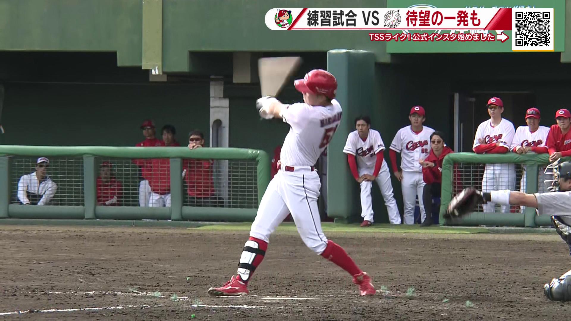 カープ沖縄キャンプ ドラ1平川選手 実戦で待望の初ホームラン「これぐらいやると思っていた」新井監督