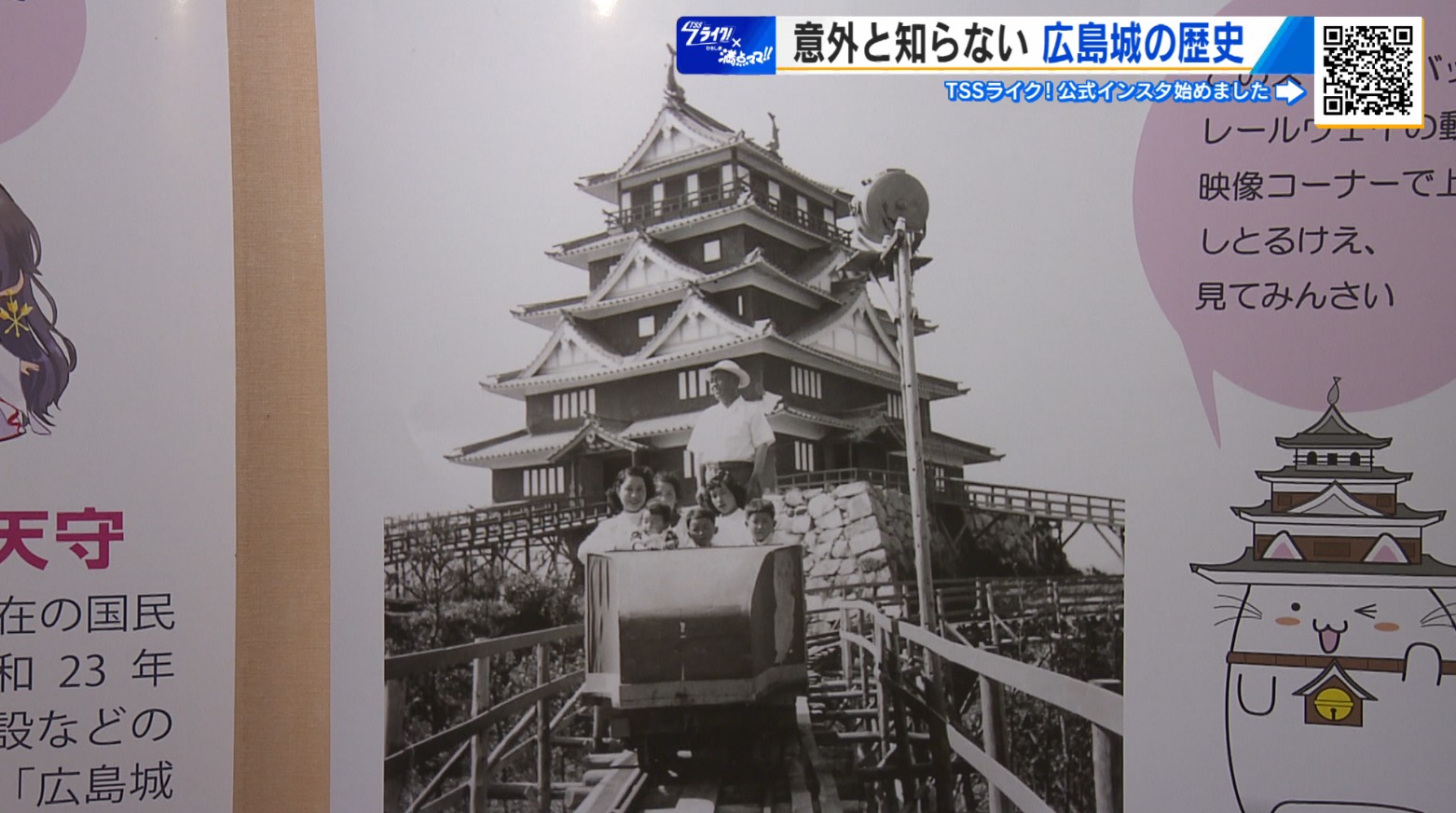 「その後、昭和32年になりまして、いよいよ広島の街が復興ができてきたということで、『広島復興大博覧会』というまたイベントを開くことになりました。そして、第三会場として、今のこの建物を再建しようということでで、出来上がったのが現在の天守です。見ての通り、天守って鉄筋コンクリートでできています。しかし、実は木造にする方がいいんじゃないかと意見もあったんですけども、当時は、鉄筋コンクリートの方が高かった。そして、広島って一度焼け野原になってるので木造だと火災に弱いんじゃないのかという意見もありまして、鉄筋になりました」