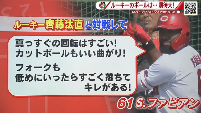 土曜日に行われたオープン戦では3失点と苦しんだ齊藤汰直投手でしたが、ファビアン選手も絶賛!ということで、これからに期待です!
