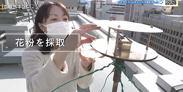 「広島市中区のビルの屋上です。いまこちらで日本気象協会の職員の方が花粉の採取をしていますが、どうですか?」